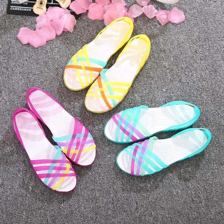 2020 Summer Korean Fashion Women's Shoes, Jelly Beach Loafers, Rainbow Croc Sandals,size 35-40