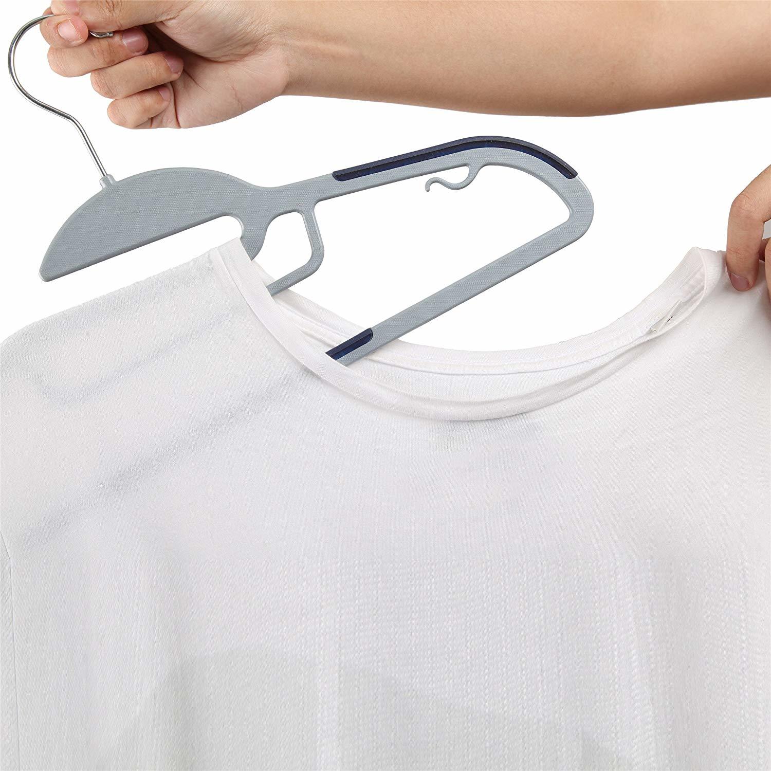 Cresnel (TM) innovative U-slide clothes hanger allows sliding of shirt into hanger easily without stretching the collar. Made of high grade plastic this hanger is built to last. The non-slip silicone strip keeps clothes stay in position. Extra built-in holder allows hanging of tie, scarf and small garment item. With this innovative Cresnel (TM) U-Slide hanger you can now pre-select a set of coat, pant and tie all in one single hanger.