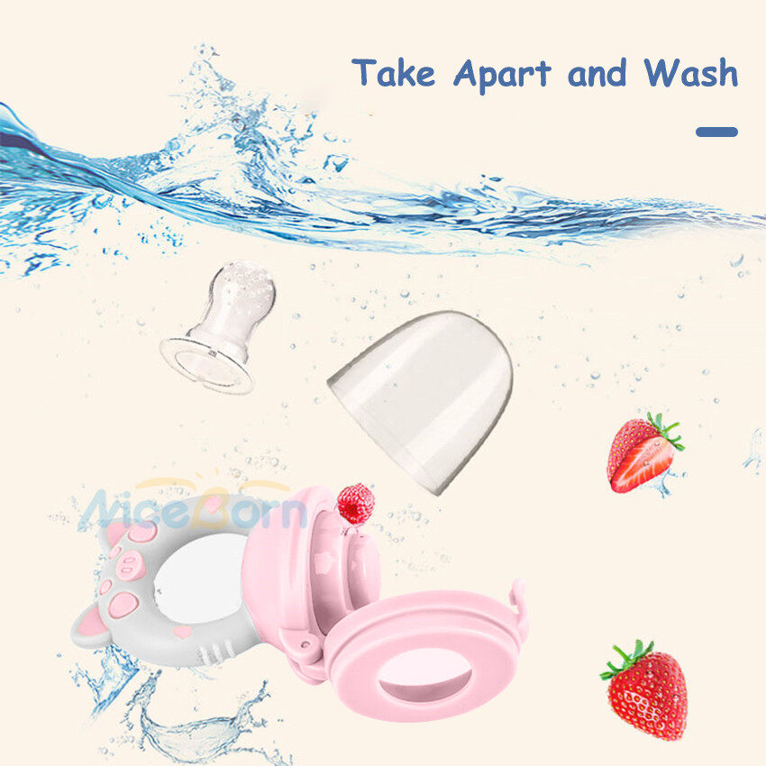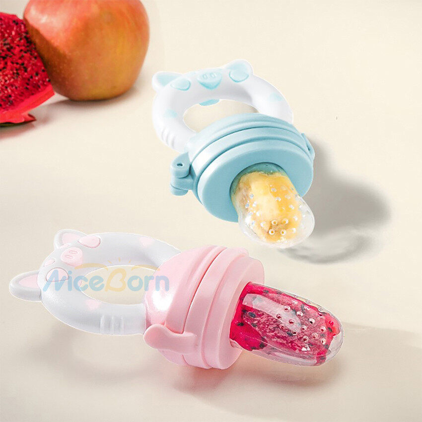 NiceBorn Baby Pacifier Fresh Food Feeder Newborn Infant Soother Fresh Fruit Milk Nibbler Safety Silicone BPA Free Toddlers 3 Different Sized Silicone Teething Pacifiers