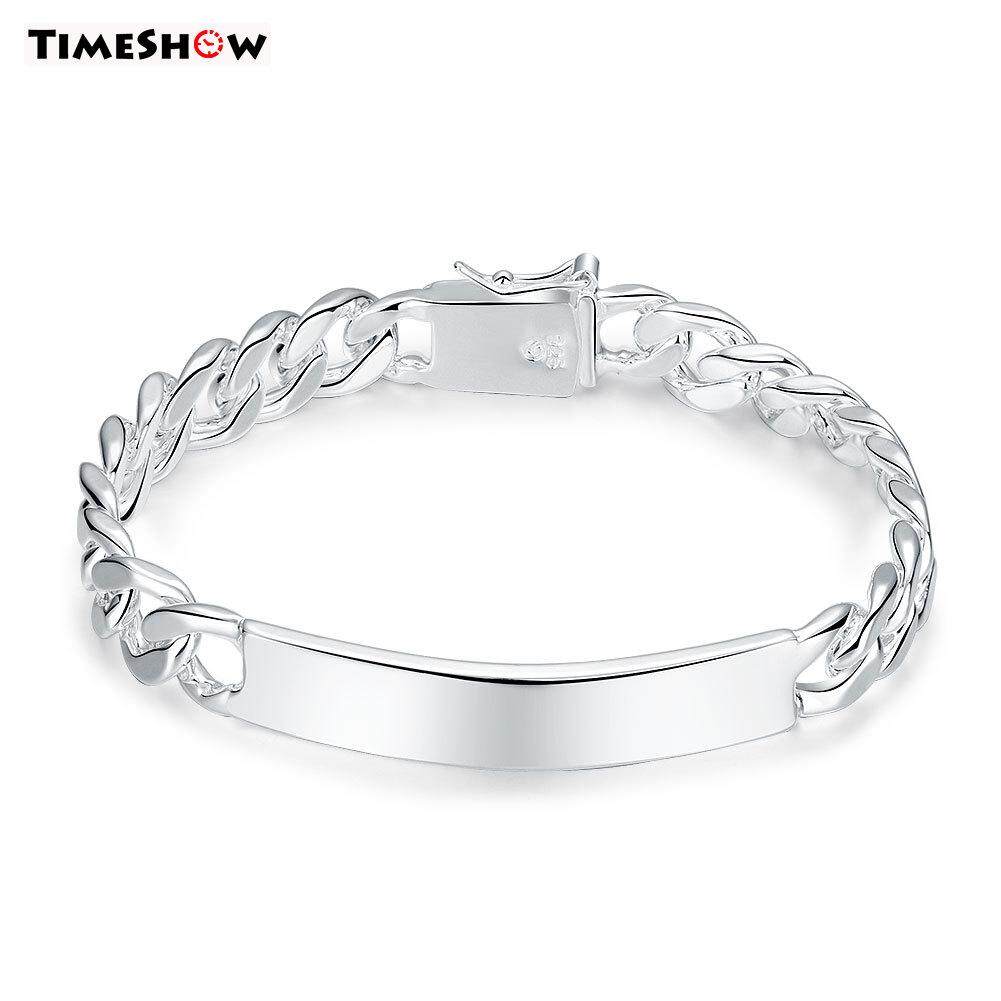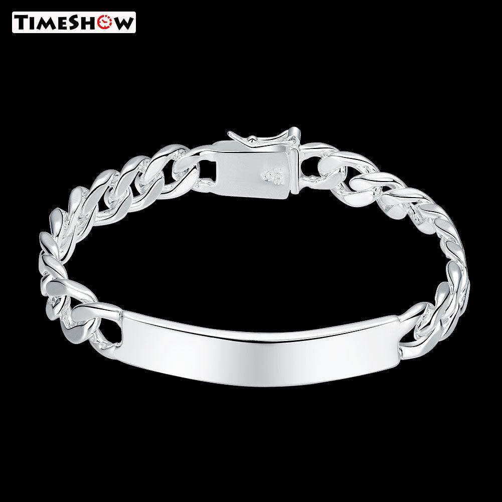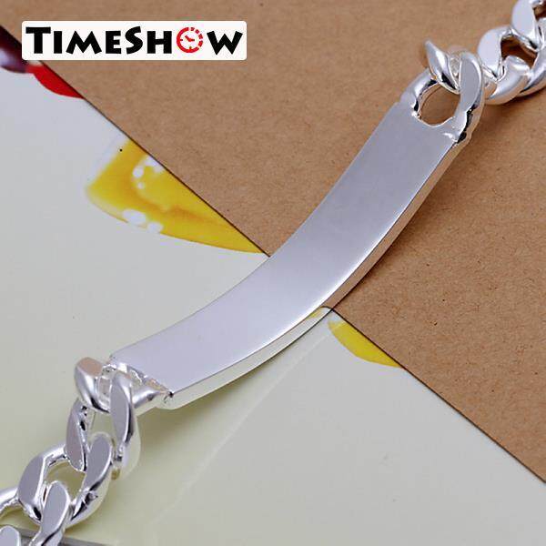 TimeShow New Fashion Jewelry 925 Sterling Silver 10MM Flat Side Chain Bracelet For Unisex Man Women Gift