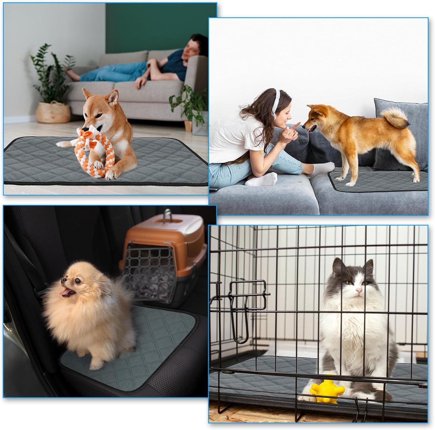 • MULTIPURPOSE PUPPY PADS: Dog training pads for floors, beds, sofas, crates, carpets, cars, can help potty train puppies, elderly or sick pets. The pet pads can be used as puppy pads, litter pads, dog fence pads and pee pads. These pee pads are also very easy to carry around and give your dog a sense of home even when travelling.