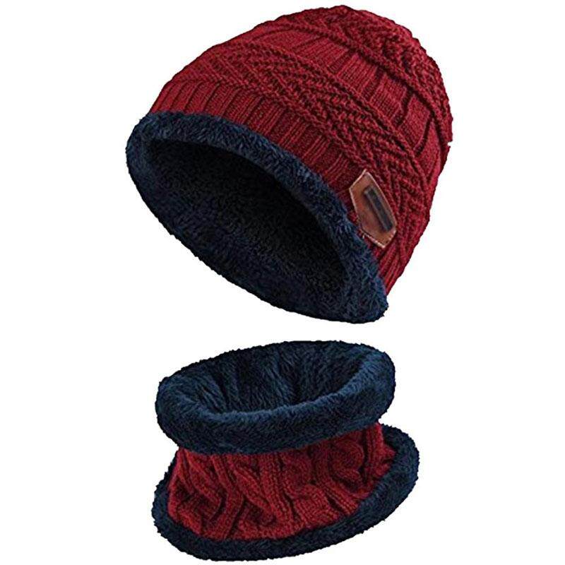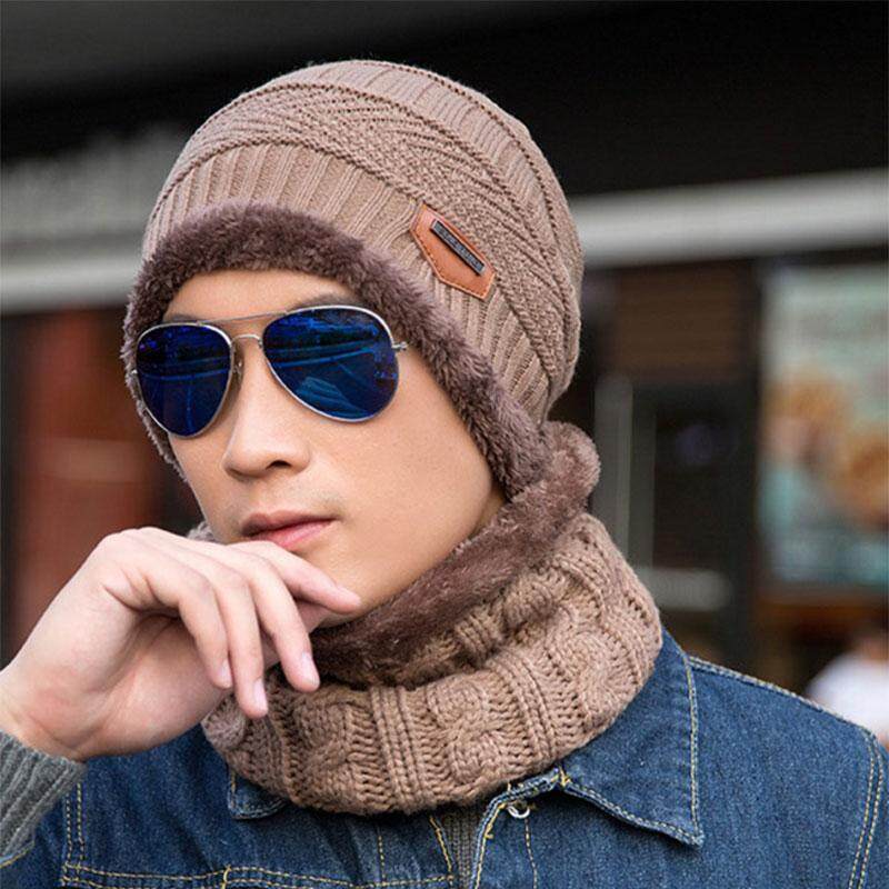 2 Pcs/set Knitted Hat Scarf Caps Neck Warmer Winter Hats For Men Women Skullies Beanies Warm Fleece Cap