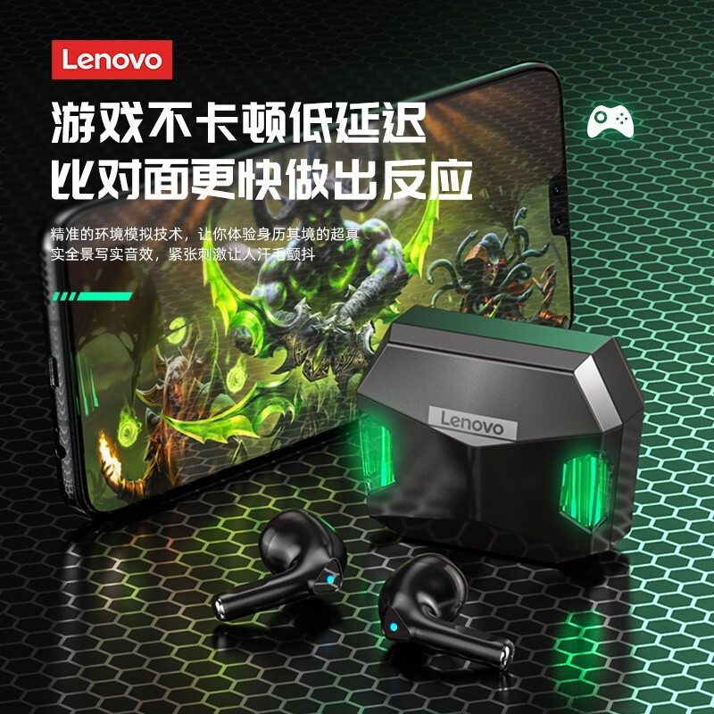 Lenovo GM5 Gaming Low Latency True Wireless Earphone Bluetooth 5.0 Earbuds with HD Stereo Sound with RGB Lights headphone with mic Handfree Earpods earpieces earpod Headset with Microphone audio TWS