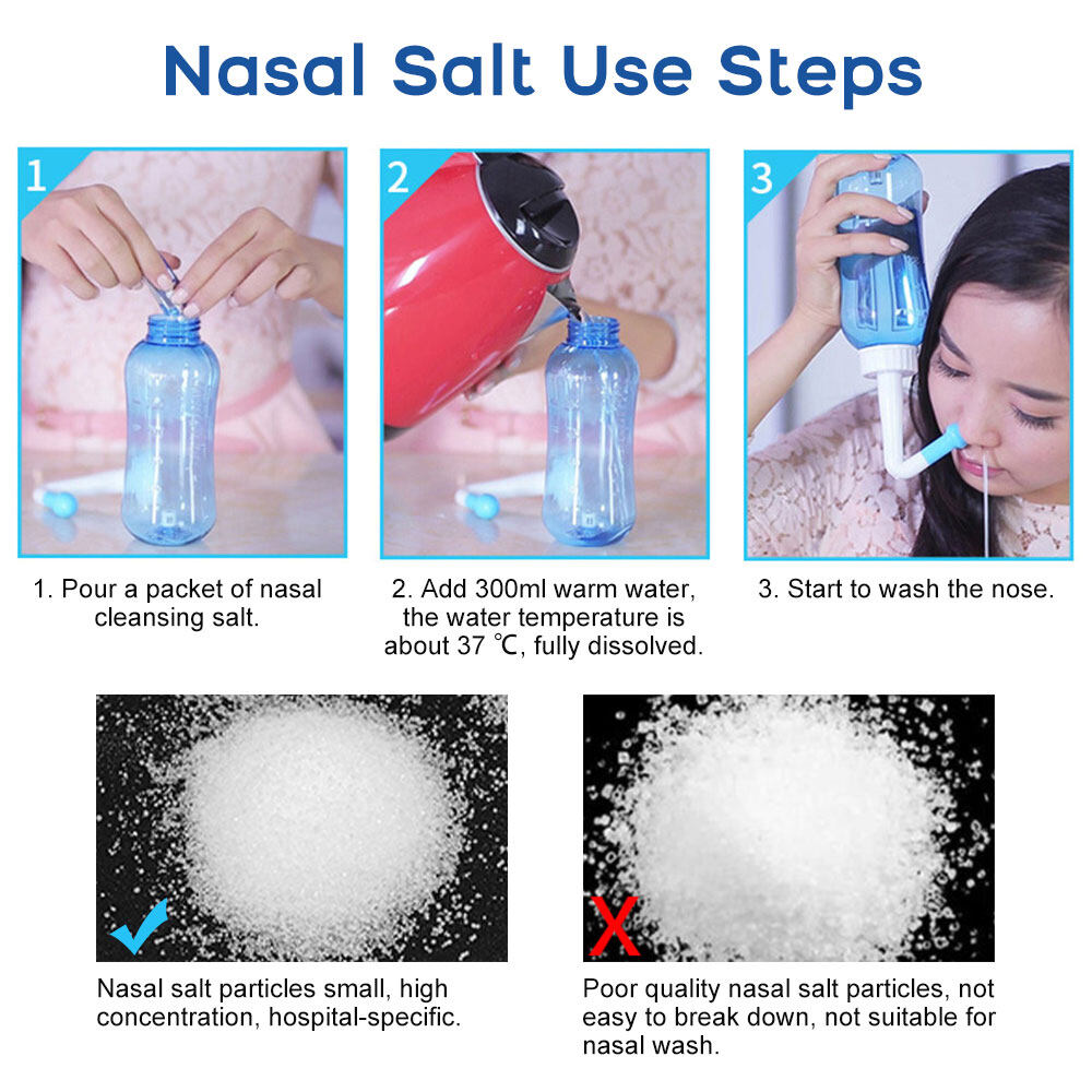 To avoid and discomfort ,mix nasal wash salt solution to the proper concentration by strictly following the instruction in this user guide