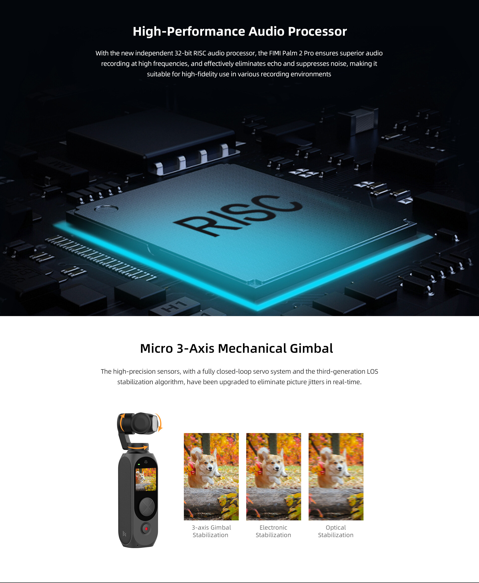 FIMI PALM 2 Pro 3-axis Handheld Gimbal 1/2 Inch Sensor 4K 30fps 160 Minute Mechanical stabilization FIMI Original Pocket