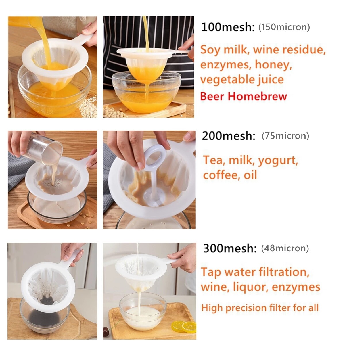 100/200/400 Mesh Kitchen Ultra-fine Mesh Strainer Kitchen Nylon Mesh Filter Spoon for Suitable for Soy Milk Coffee Milk Yogurt