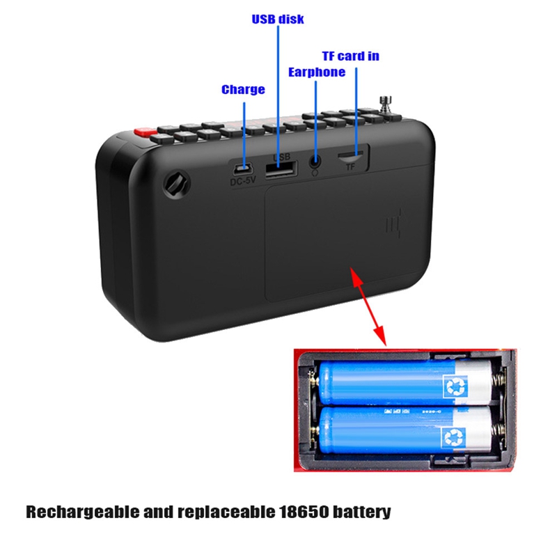 Function: Bluetooth 5.0/Hands-free calll/Sound recorder/FM radio /TF card play /USB disk play FM frequency:87.5MHz~108MHz Rated power: 5w Frequency response: 100Hz~18KHz Size:133x41x74mm
