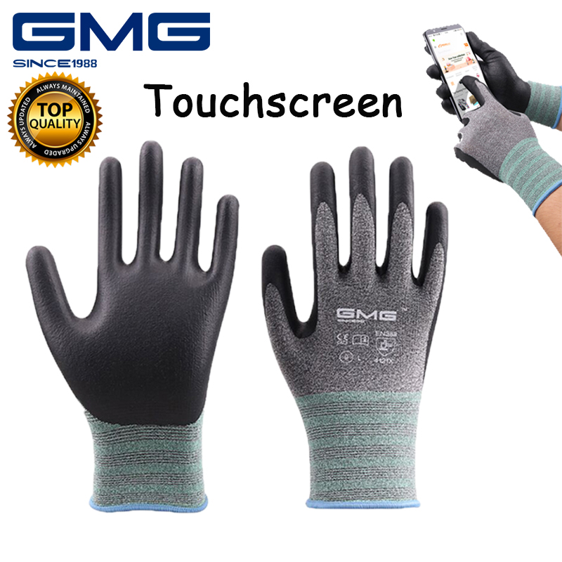 GMG Working Gloves thin foam gloves Non-slip Gloves The thumb, forefinger, and middle finger have conductive fibers. Nitrile Garden Coating Gardening Touch Screen Mechanic Work Gloves for Women a