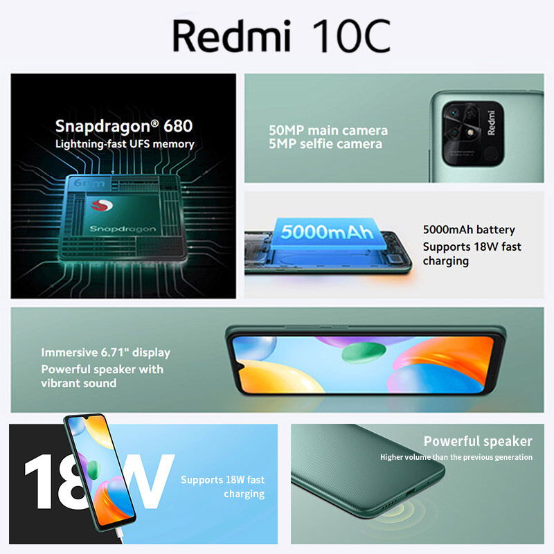 【New Arrival】Global Version Xiaomi Redmi 10C Smartphone 4GB 64GB / 128GB Snapdragon 680 Octa Core 6.71" 50MP Camera 5000mAh 18W Fast Charge