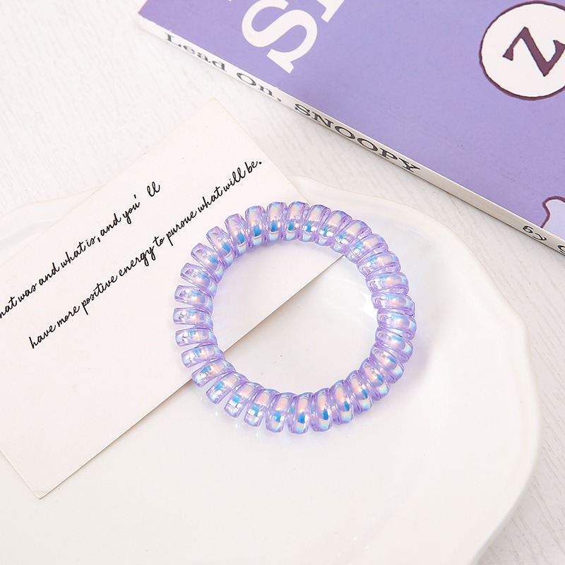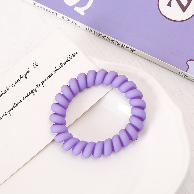 [SG?Lavender Violet Lover] 4pc 8pc 5cm Shining & Matte Purple Plastic Teleties Band Ponytail Holder, Telephone Wire Cord Spiral Head Ties Hair Band Hair Ring Hair Ties, Ideal Size to Wear as Bracelet