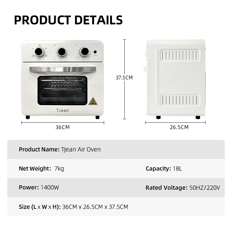 TJean 18L Air Oven Large Capacity Visual Oil Free Air Fryer Healthy Food Grade Material Multi Functional Deep Fry Electric Kitchen Appliance