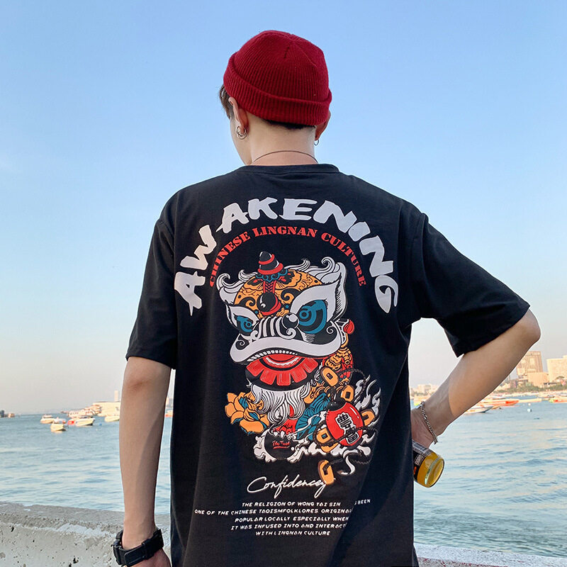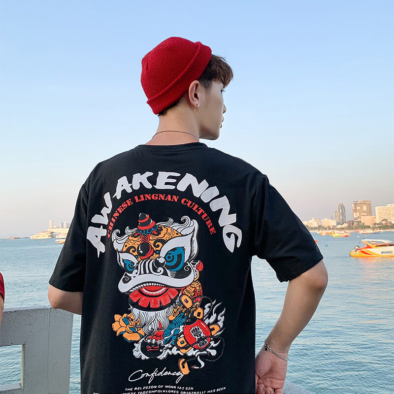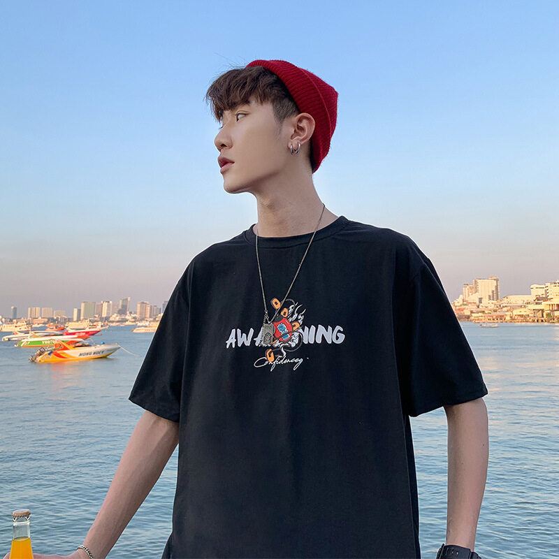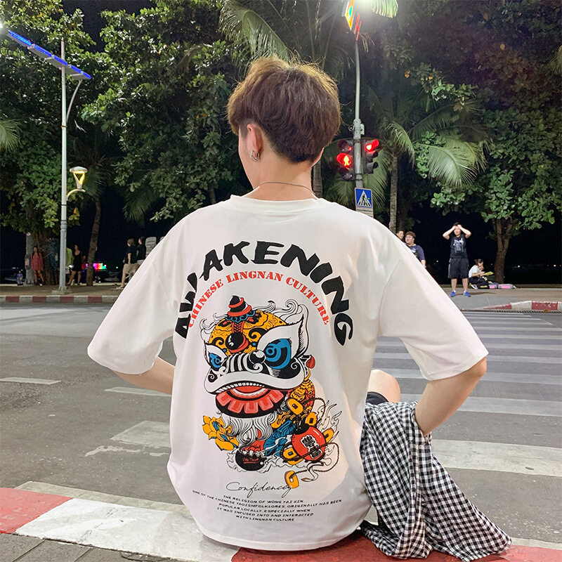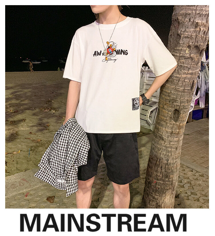 t shirt Men Large Size Korean Style Cartoon Print Oversize Casual Fashion Tops