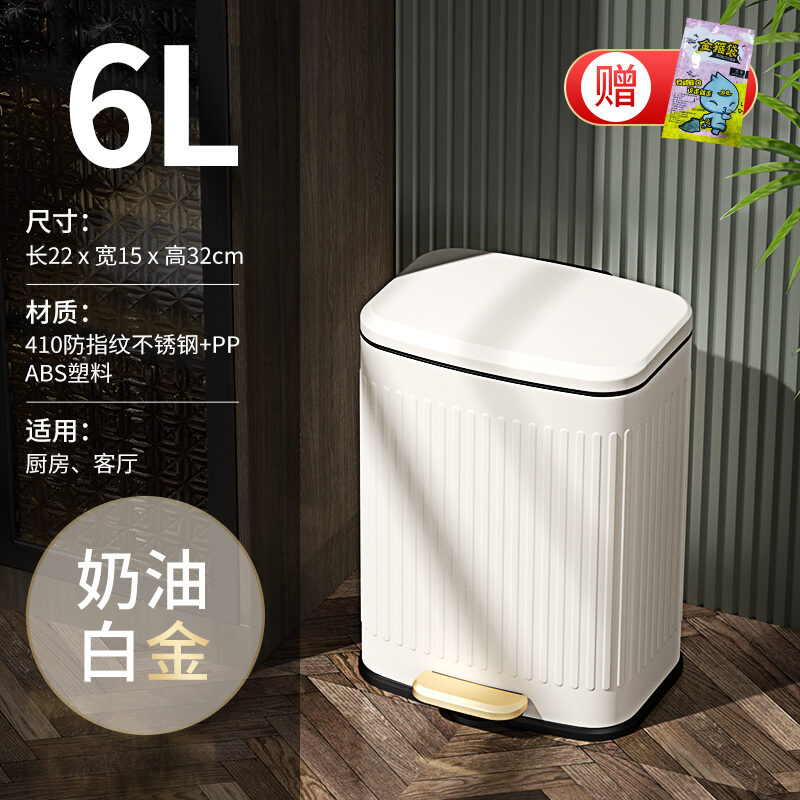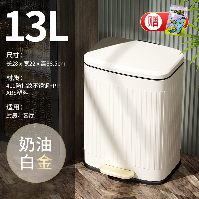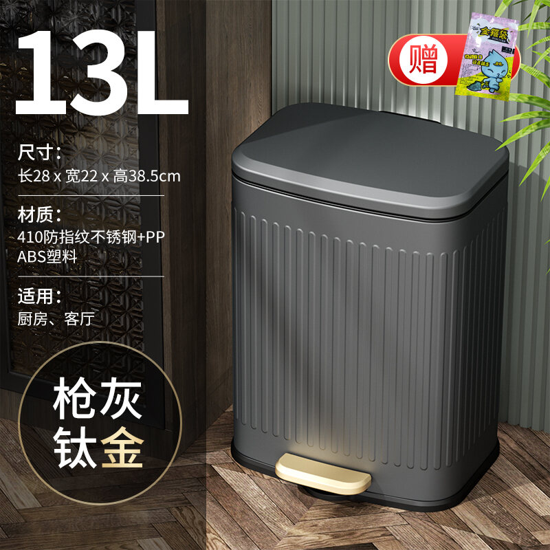 Wheat Barrel Light Luxury Vintage Kitchen Trash Can Household Pedal Large with Lid Living Room Stainless Steel Pedal Dedicated
