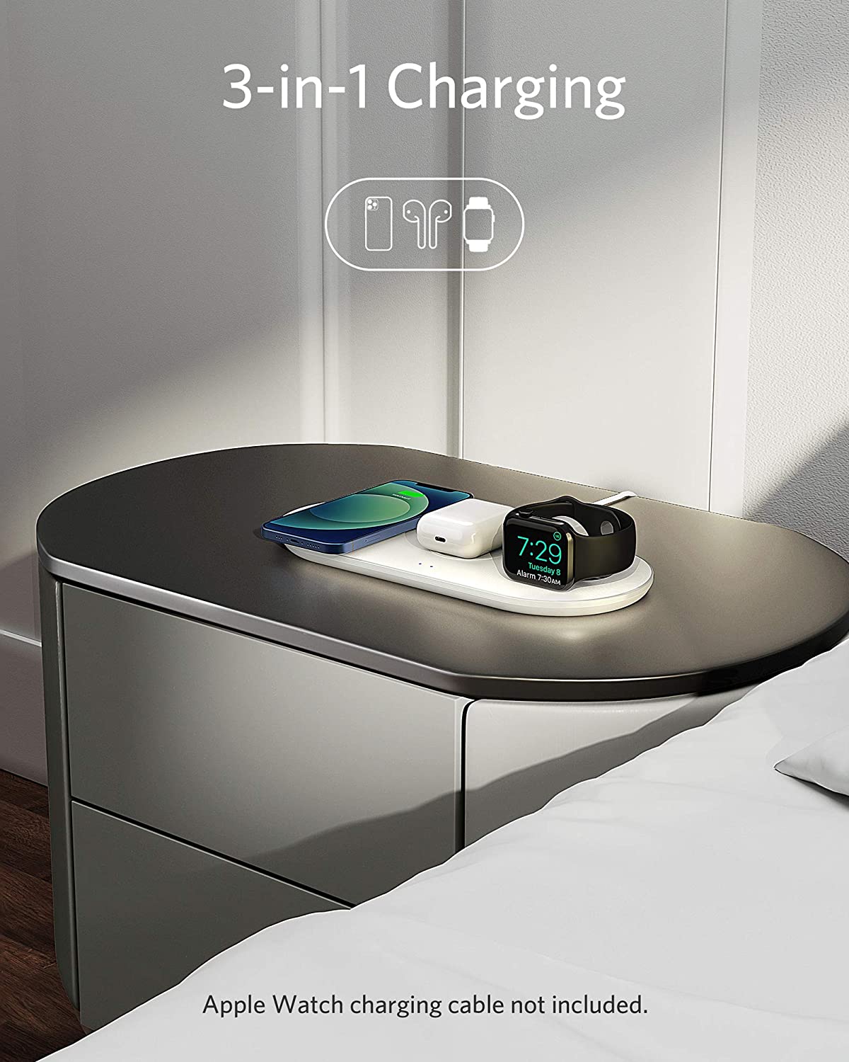 Anker PowerWave 3-in-1 Qi-Certified Pad Wireless Charging Station for Apple Products, iPhone 12, 12 Mini, 12 Pro, SE, AirPods Pro (Watch Charging Cable & AC Adapter Not Included)