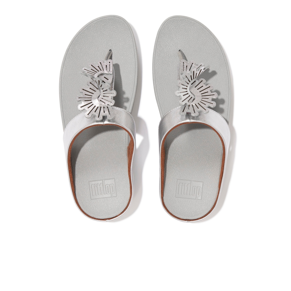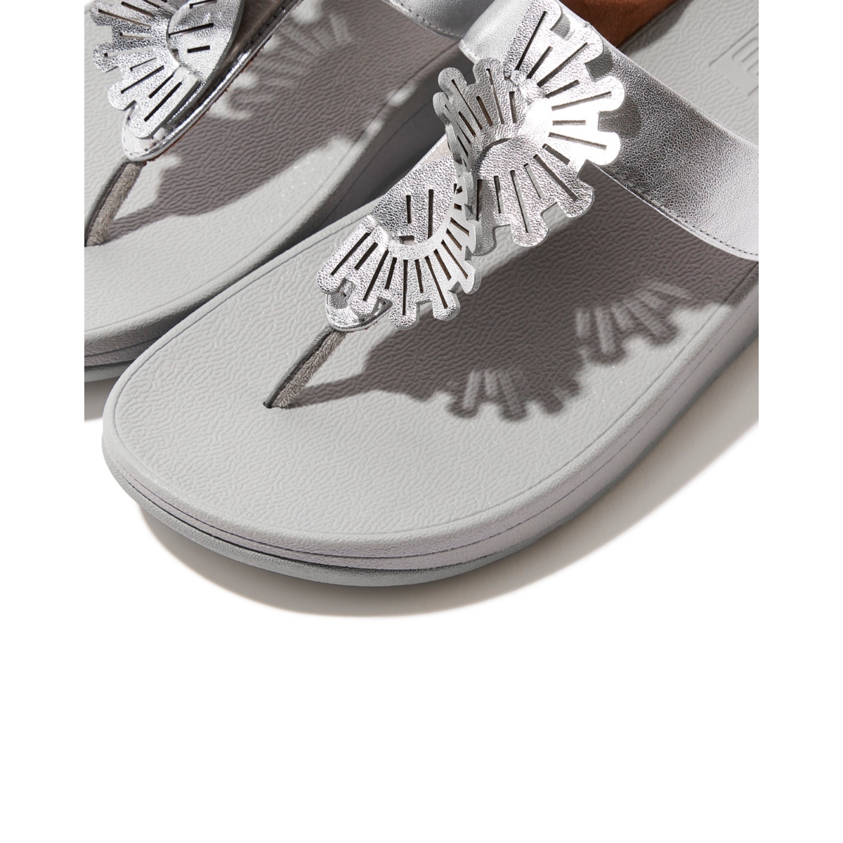 FitFlop FINO Women's Scallop-Twist Metallic Leather Toe-Post Sandals - Silver (EO4-011)