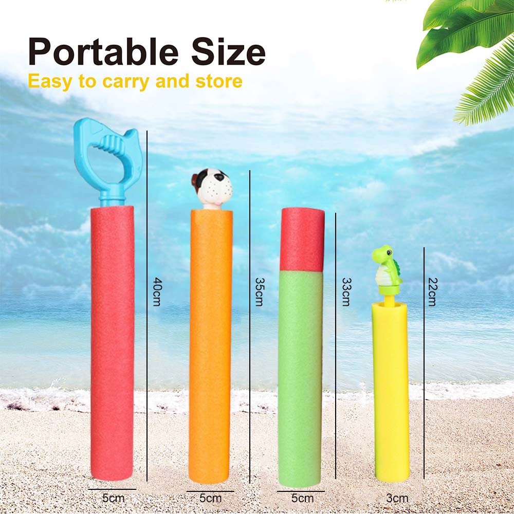 [Safe and efficient]: This water gun is made of foam and plastic. It is the safest, lightest and easiest to use water gun. Using environmentally friendly materials, the foam material feels softer and will not harm the delicate skin of kids.