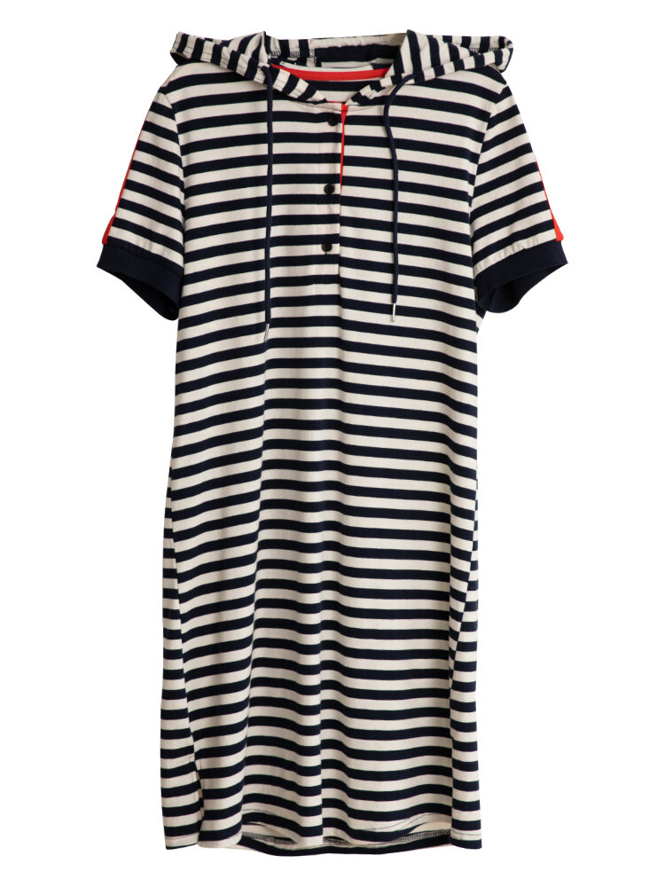 September Momo 2022 Summer New Short Sleeve High-Grade Slimming Hooded Dress Polo Collar Striped Dress for Women
