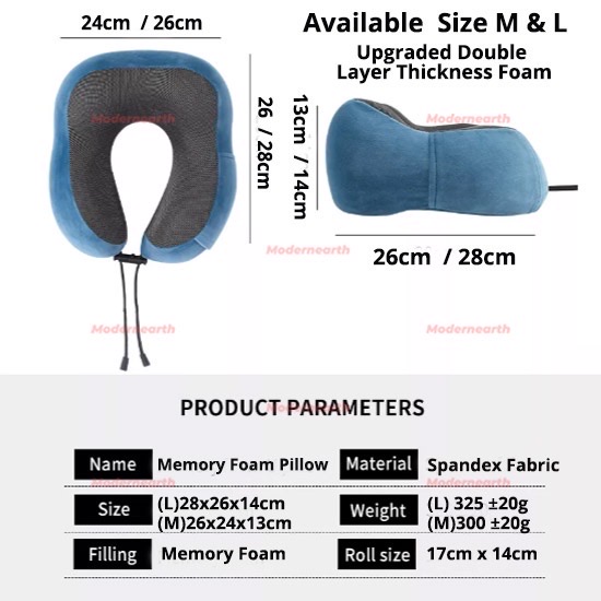 • 1x High Density Memory Foam Travel Pillow