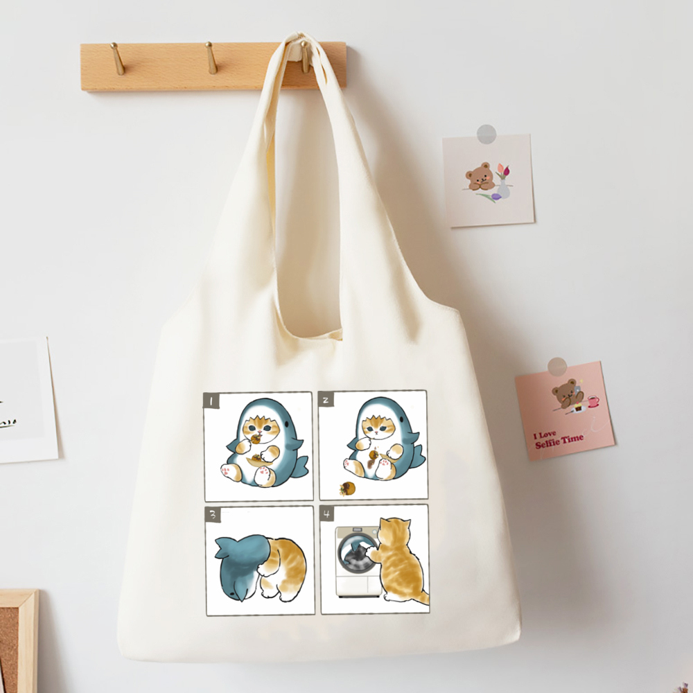 Cute Cat Print Canvas Tote Bag Casual Storage Bags Large Capacity Shopping Bag Women Totebag for Student Shoulder Bag 帆布包 Ins