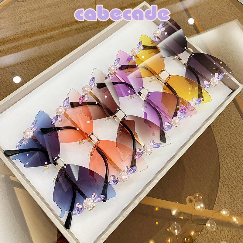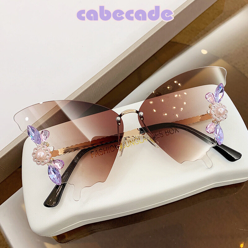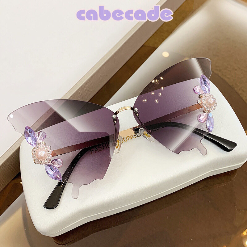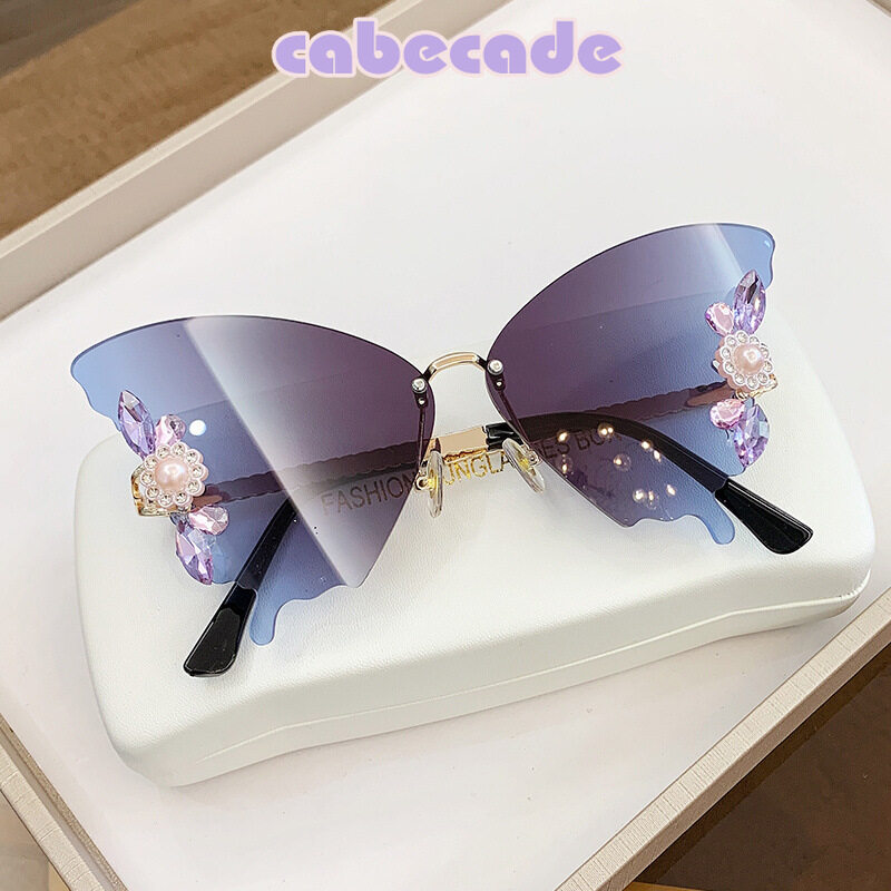 Cabecade 【high quality】 New butterfly-shaped diamond-encrusted large-frame sunglasses women's fashion sunglasses women's trend street shooting INS net red fashion wear