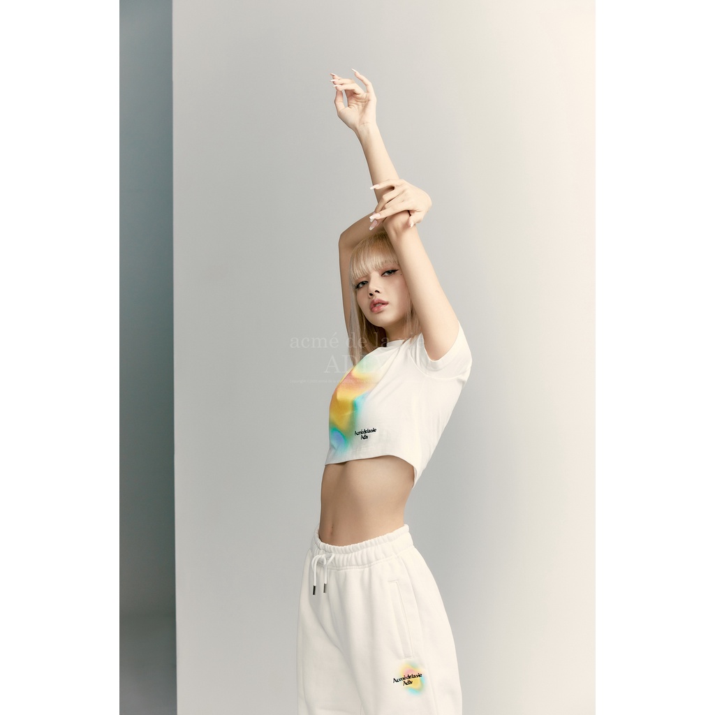 [acme de la vie] 100% Authentic BLACKPINK LISA OUTFITS RAINBOW GRADATION ARTWORK CROP TOP SHORT SLEEVE T-SHIRT Korean Fashion