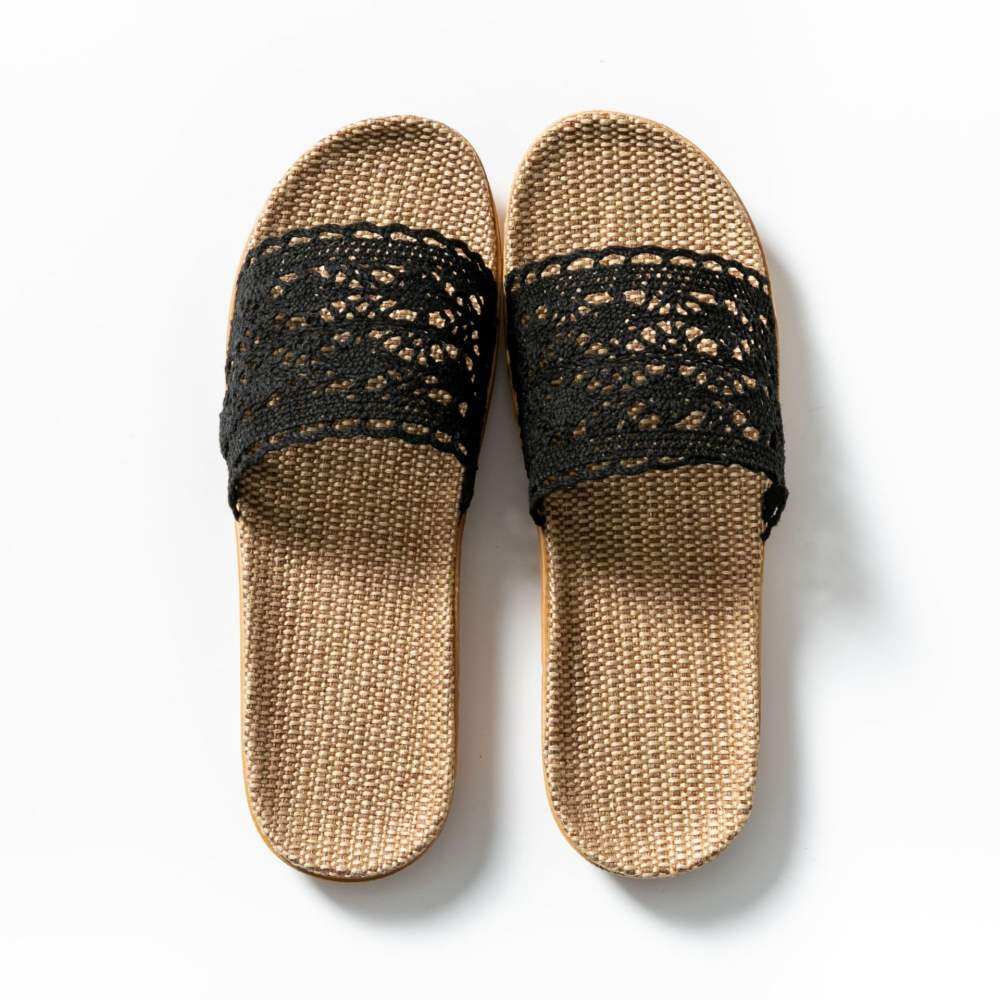 Summer Lace Ladies Sandals and Slippers Home Indoor Non-slip Floor Home Linen Slippers Female Home Use All Seasons Comfortable and Breathable Home Slippers