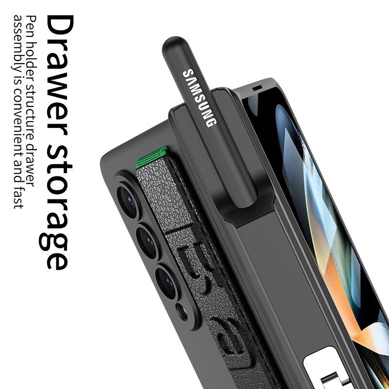 HOCE Luxury Full Protect Phone Cases For Samsung Galaxy Z Fold 3 Fold 4 With Wrist Strap Pen Slot Case For Z Fold4 Fold3 Holder Stand Hinge Protect Cover