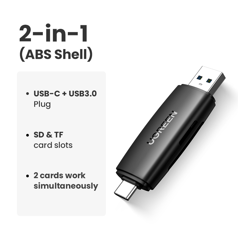 UGREEN 2 in 1 Card Reader USB 3.0 for SASMUNG S20+/S10+/S9/Note 10/Huawei P40/Dell/Lenovo/ThinkPad USB 3.0 SD TF OTG Type C Smart Memory Card Adapter for Laptop USB 3.0 Cardreader SD Card Reader Read