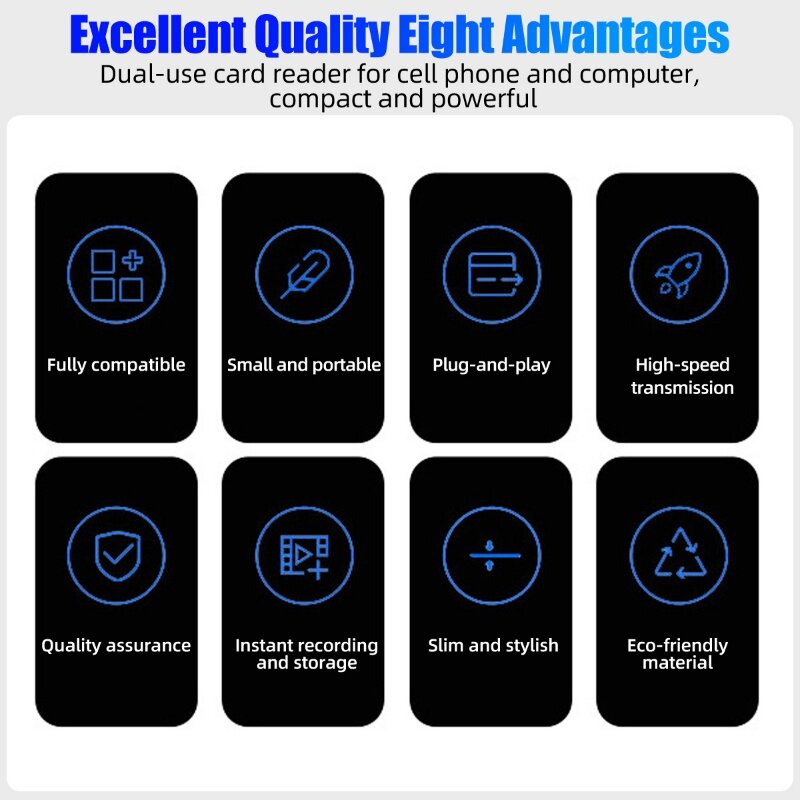 4 in 1 Interfaces:Our Card Reader is suitable for all your devices and Compatible with smartphones/PC/Notebook ect.