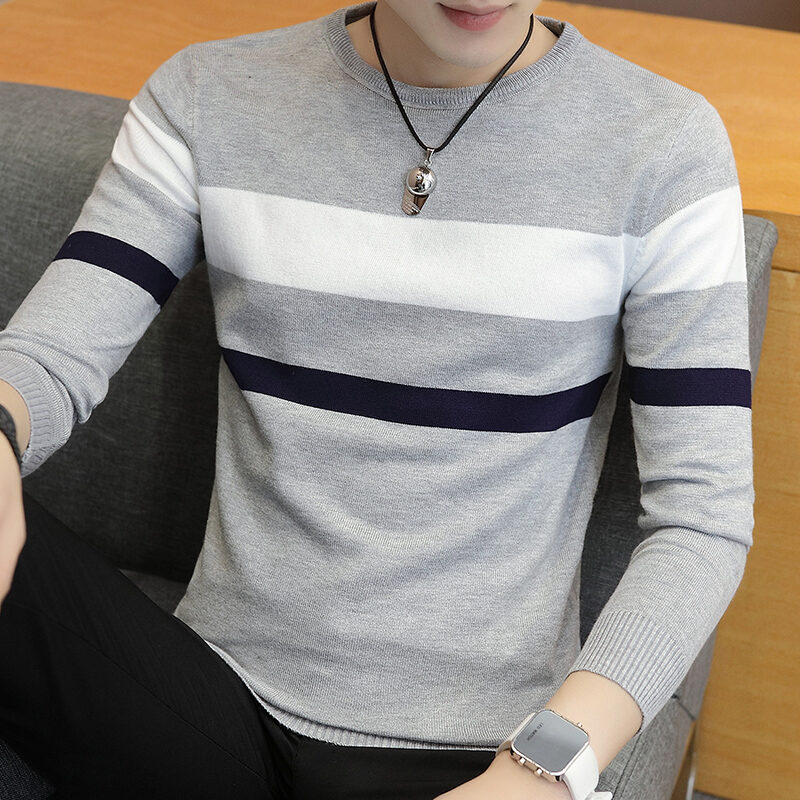 Sweater Men's 2018 Autumn New Style Men's Sweater Unique Plaid Round Neck Autumn Korean-style Fashionable Handsome Sweater