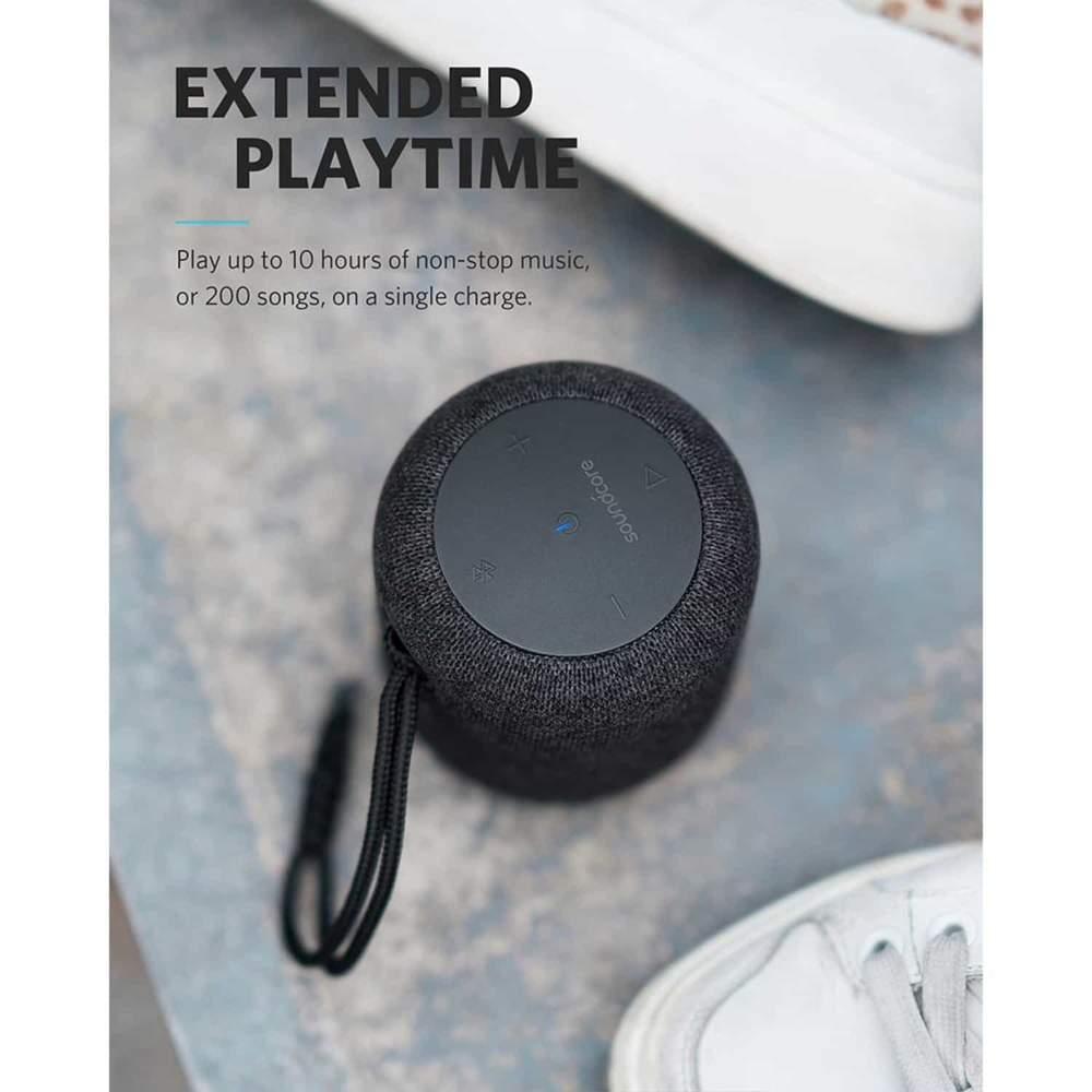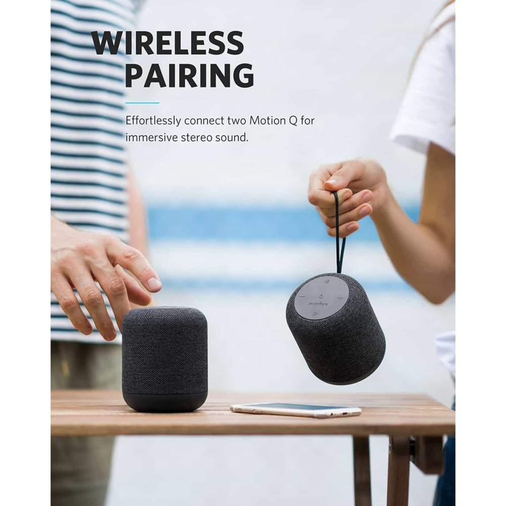 Anker SoundCore Motion Q 360° Bluetooth Speaker Waterproof 10-Hour Playtime, all-around sound paired with impenetrable waterproof protection and a wrist strap for a truly on-the-go experience.