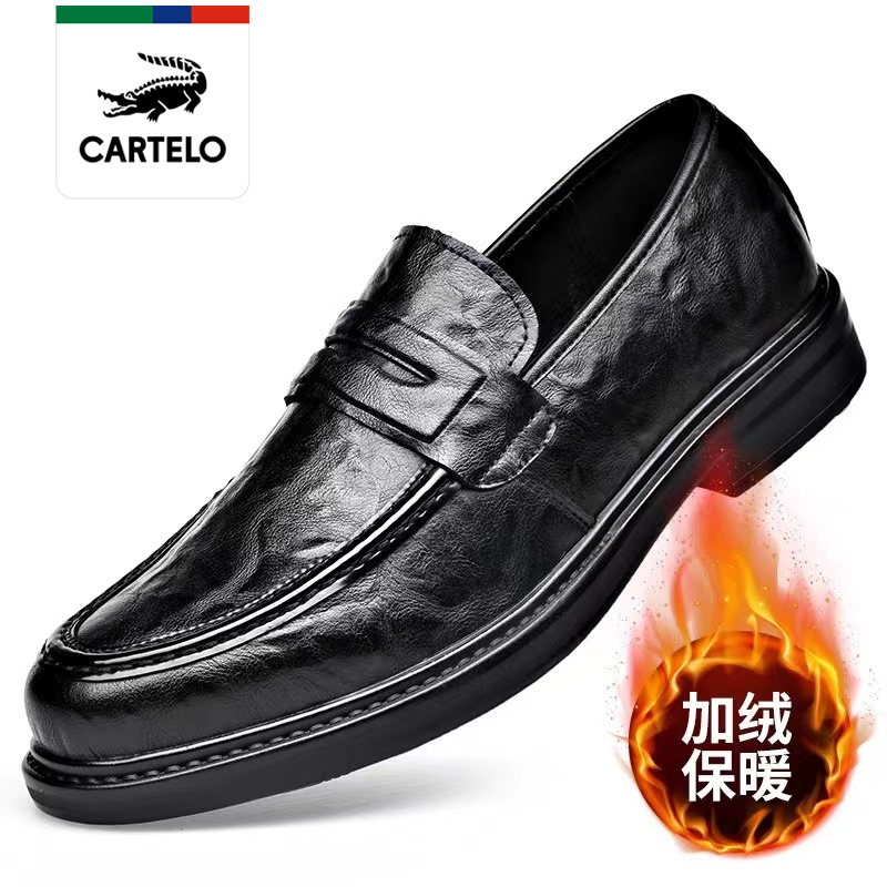 GGMM CARO Caro Crocodile Winter Fleece-lined Warm Soft Bottom Casual Leather Shoes Men's Slip-on round Toe Peas Shoes