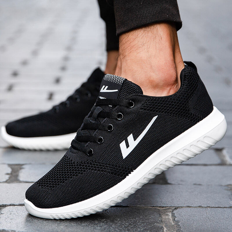 Mesh Surface Shoes Men's Summer Breathable Thin Mesh Surface Hollowed Large Mesh Men's Shoes Casual Running Black Flyknit Sneaker