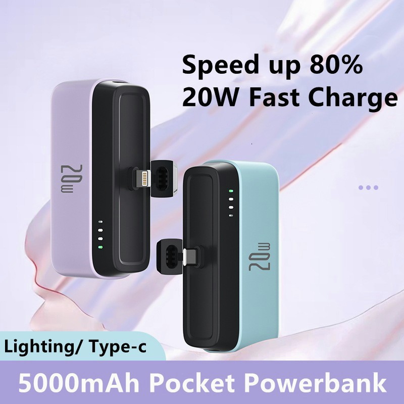 PD20W Fast Charging Powerbank 5000mah Mini Power Bank with LED Light Phone Holder Mobile Emergency Power