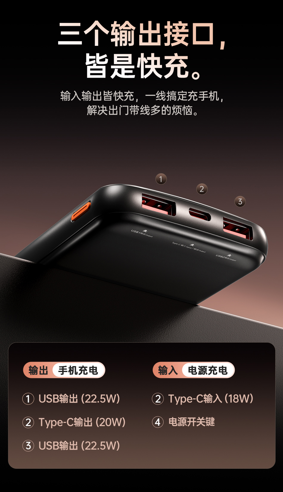 Type-C port outputs: 5V/3A, 9V2.22A, 12V/1.67A