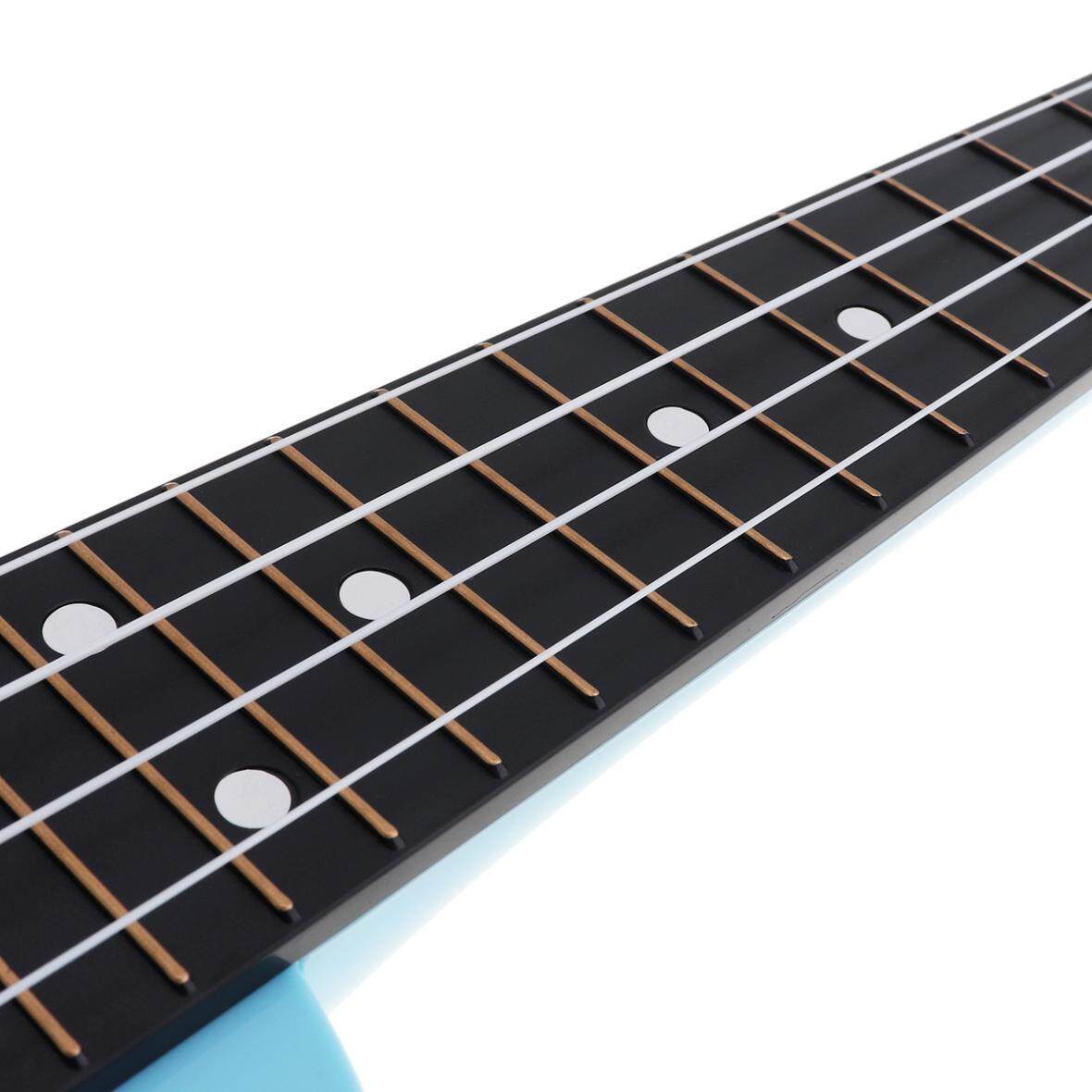 • Features:- 21 inch size, suitable for both kids and music beginner.- Color appearance, more able to attract the attention of children.- Made of plastic, durable.- Colloidal four strings, toughness, safety does not hurt the hand, each string can bring a different tone, to stimulate interest in learning.- Every ukulele sends a guitar picks.- Adjustable string design, different tightness can have different sounds.- Ideal for music beginner.