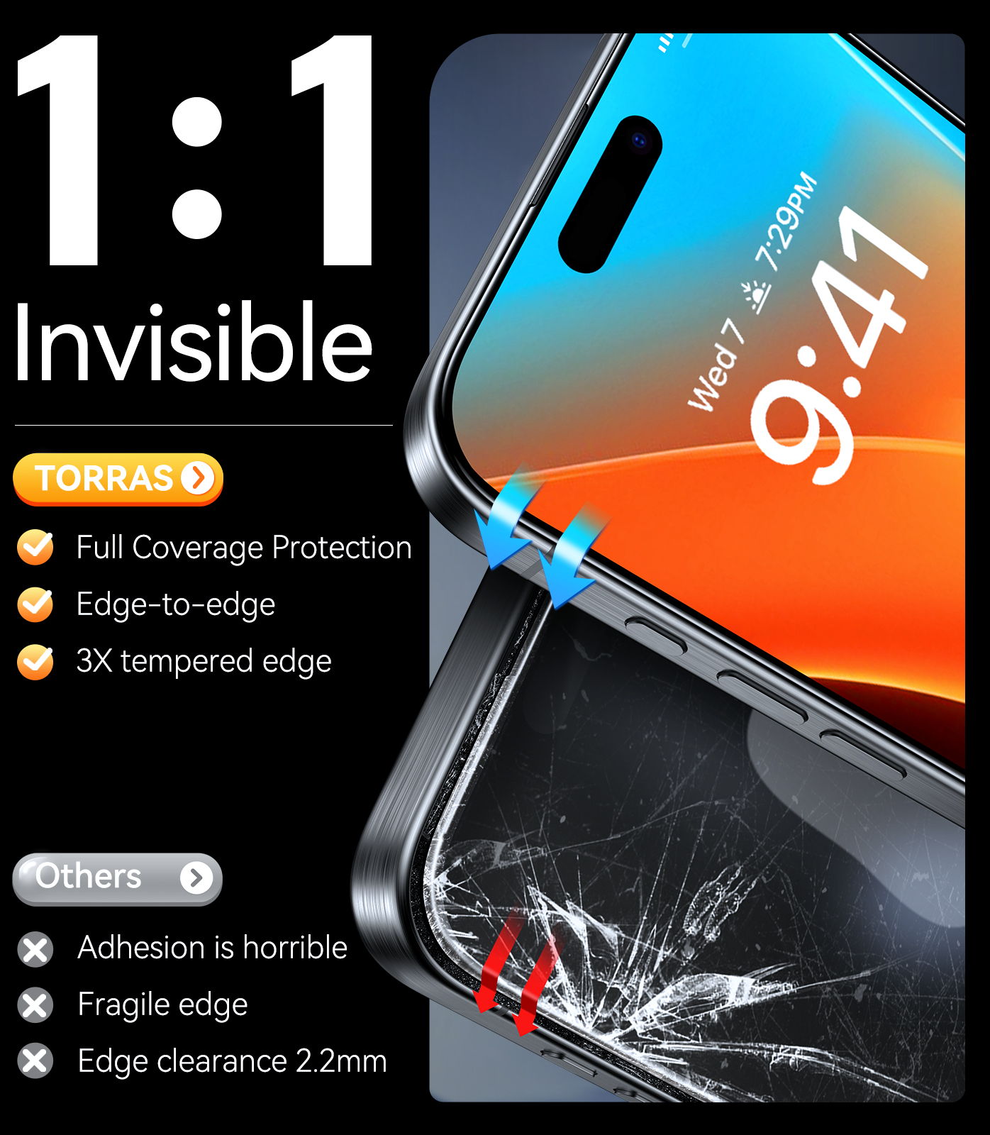 TORRAS Diamond Shield for iPhone 16/PLUS/PRO/PRO MAX Screen Protector [Military-Grade Protection] 9H Unbreakable Shatterproof for iPhone 16 Series Tempered Glass (1pack)
