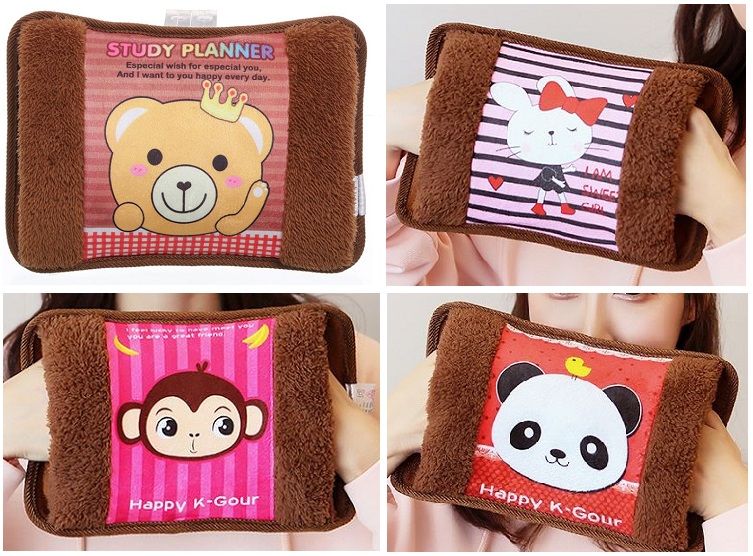 Rechargable Water Heat Pack Pain Cramp Relief Winter Travel Massager Hand Warmer Cute Cartoon Design