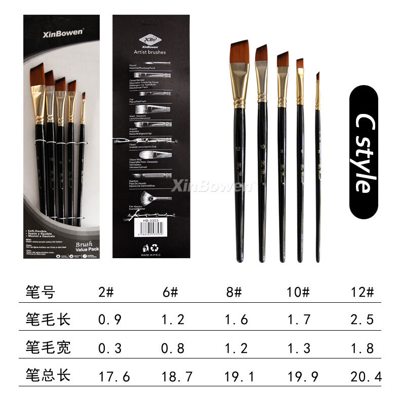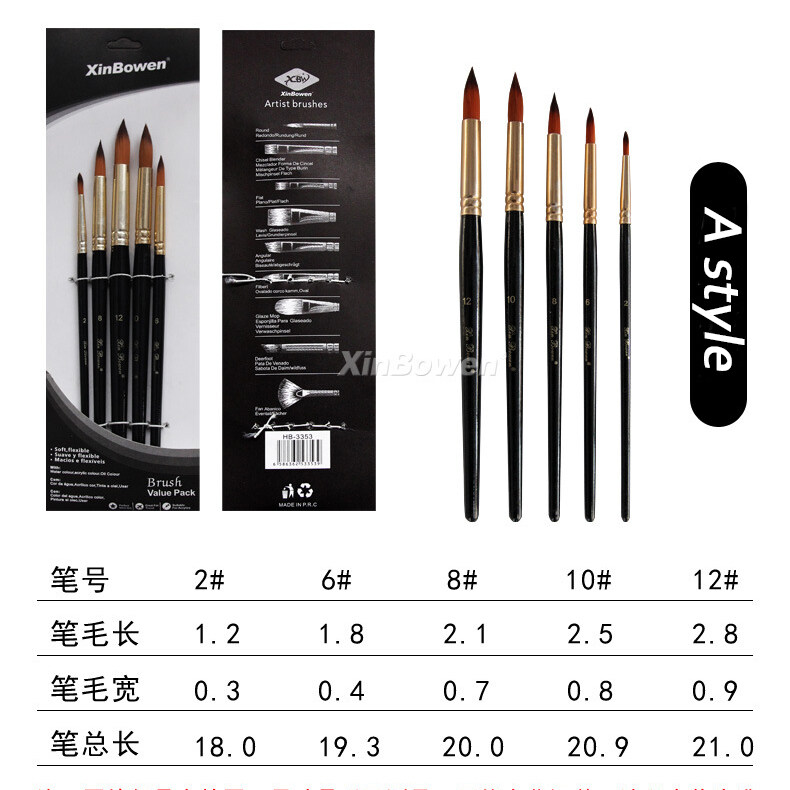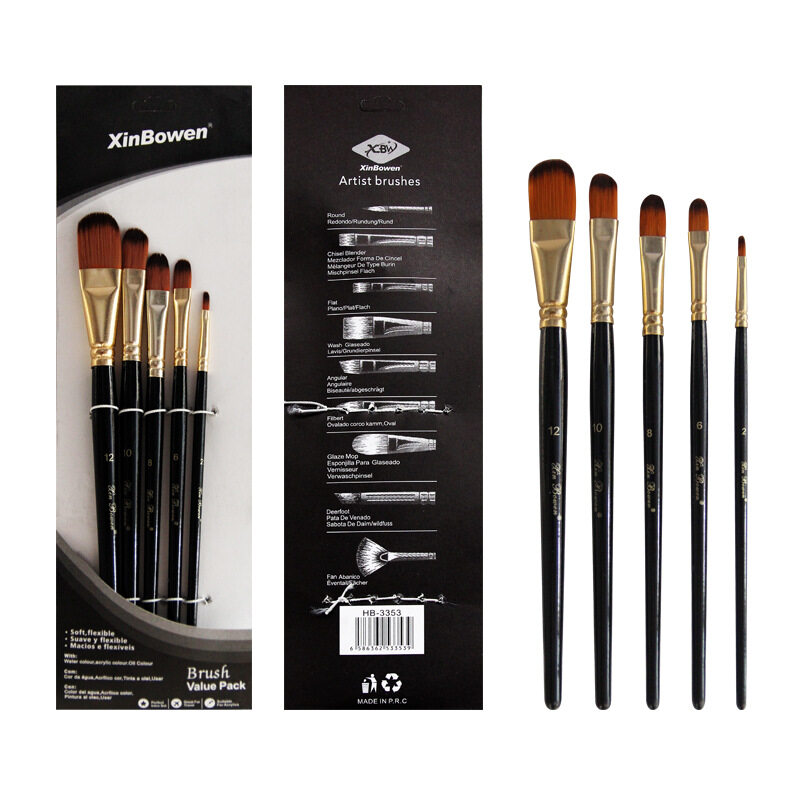 DUKEEN 5 Pcs/Set Professional Nylon Hair Oil Paint Brush Set Round Drawing Brush Acrylic DIY Watercolor Pen for Artists Painting