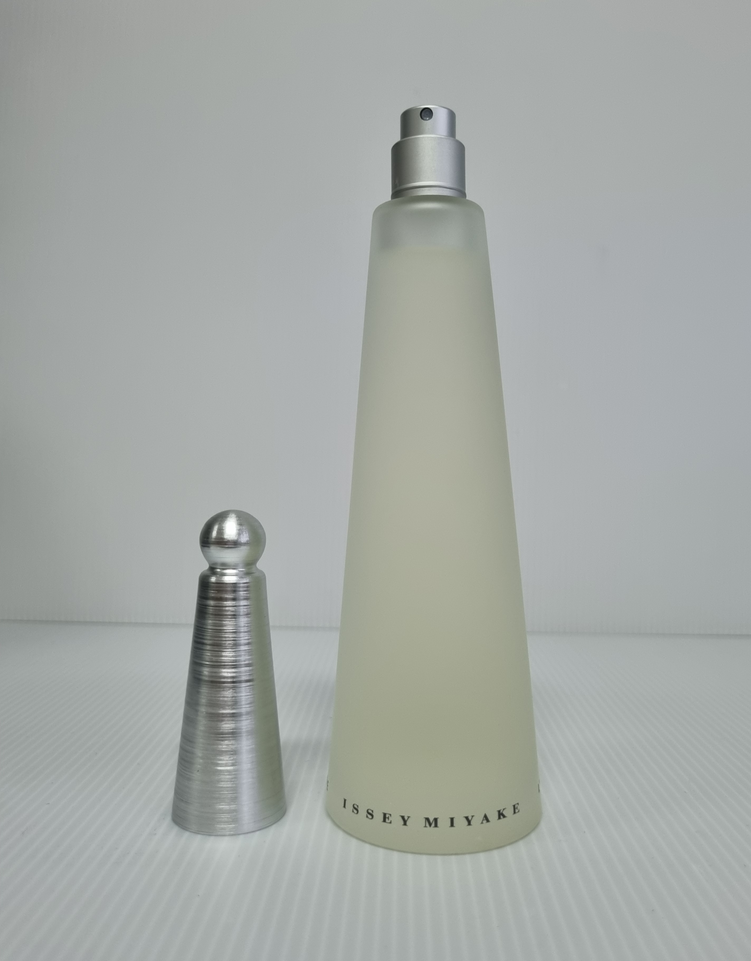 Issey Miyaké thought about creating a perfume that was "as clear as spring water", combining the spray of a waterfall, the fragrance of flowers, and the scent of springtime forest.L'Eau d'Isseyis an aquatic floral scent with transparent notes of lotus, freesia and cyclamen and juicy melon. The middle note of peony, lily and carnation reveals the perfume's character. The end note is a refined woody scent with the notes of cedar, sandal, musk and amber.