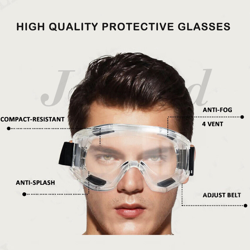 JvGood Fully Enclosed Safety Goggles Anti-impact Protective Safety Glasses Effectively Anti Infection Eye Protection Anti-Scratch Wraparound Lenses Anti-splash Sand-proof Goggles with Ultra-wide Adjus