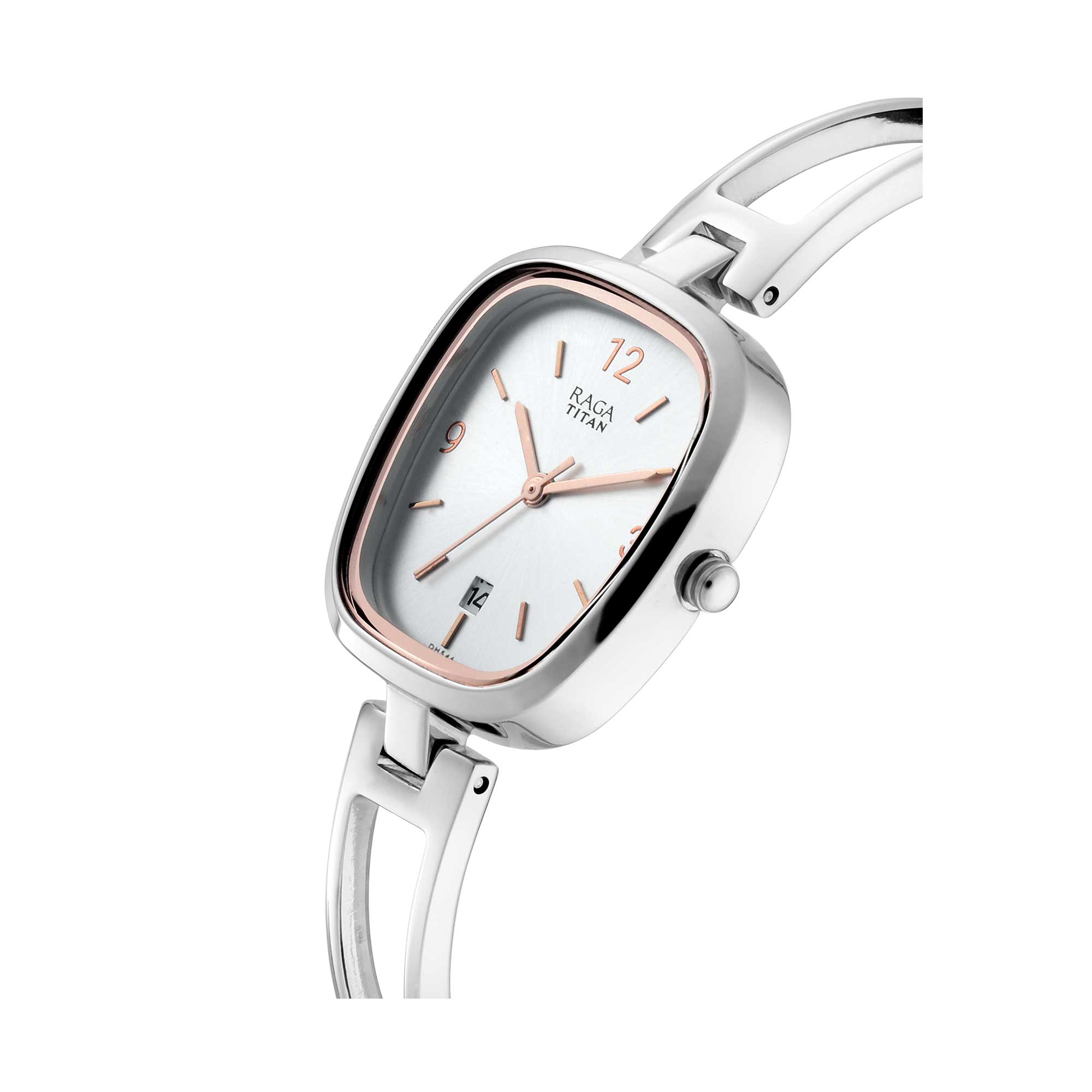 Titan Raga Viva Silver Dial With Silver Metal Strap Women's Analog Watch 2604SM01