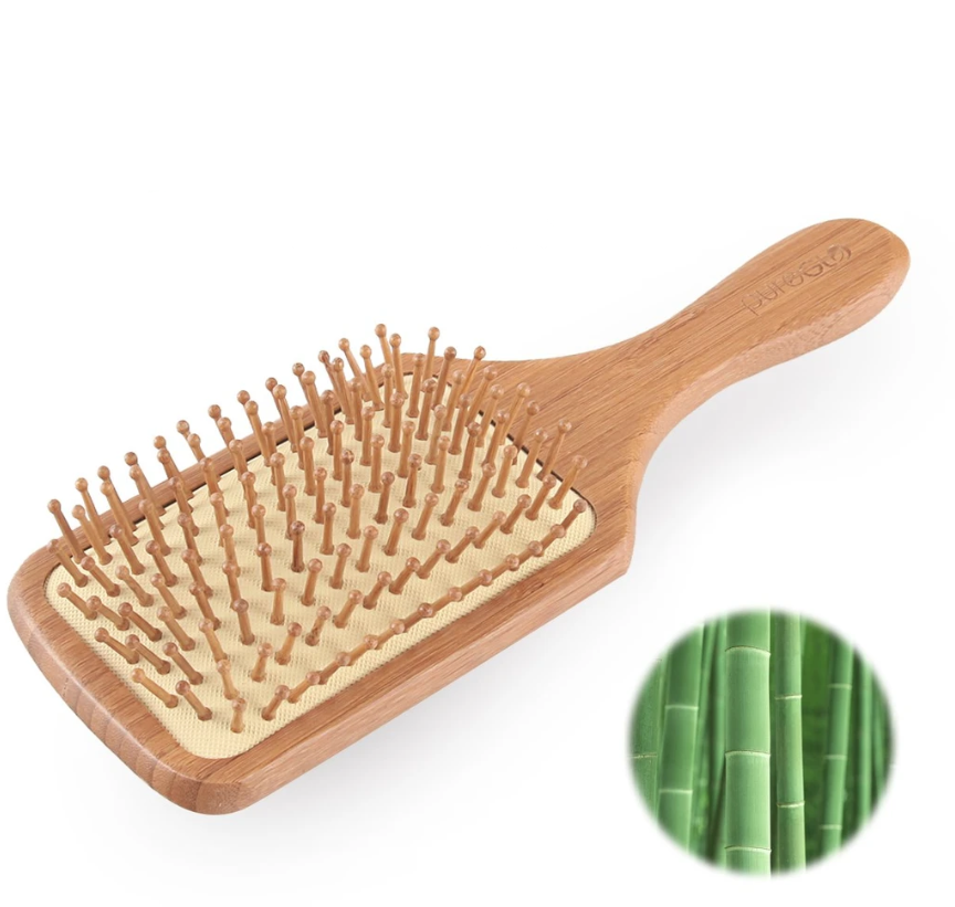 • Effortless Detangling. Sharp tips and edges of plastic bristles can pull and tear hair strands, while the delicately polished bamboo bristles on PureGLO wooden hairbrush glide through your hair like breeze.