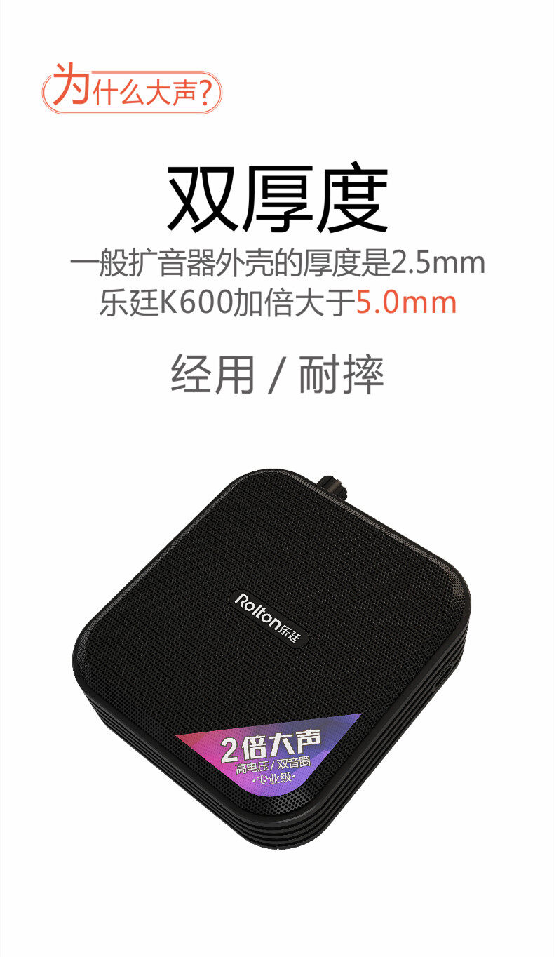 Rolton K600 Microphone Bluetooth Loudspeaker Portable Auto Pairing Voice Amplifier Megaphone Speaker USB Charging for Teaching Sales