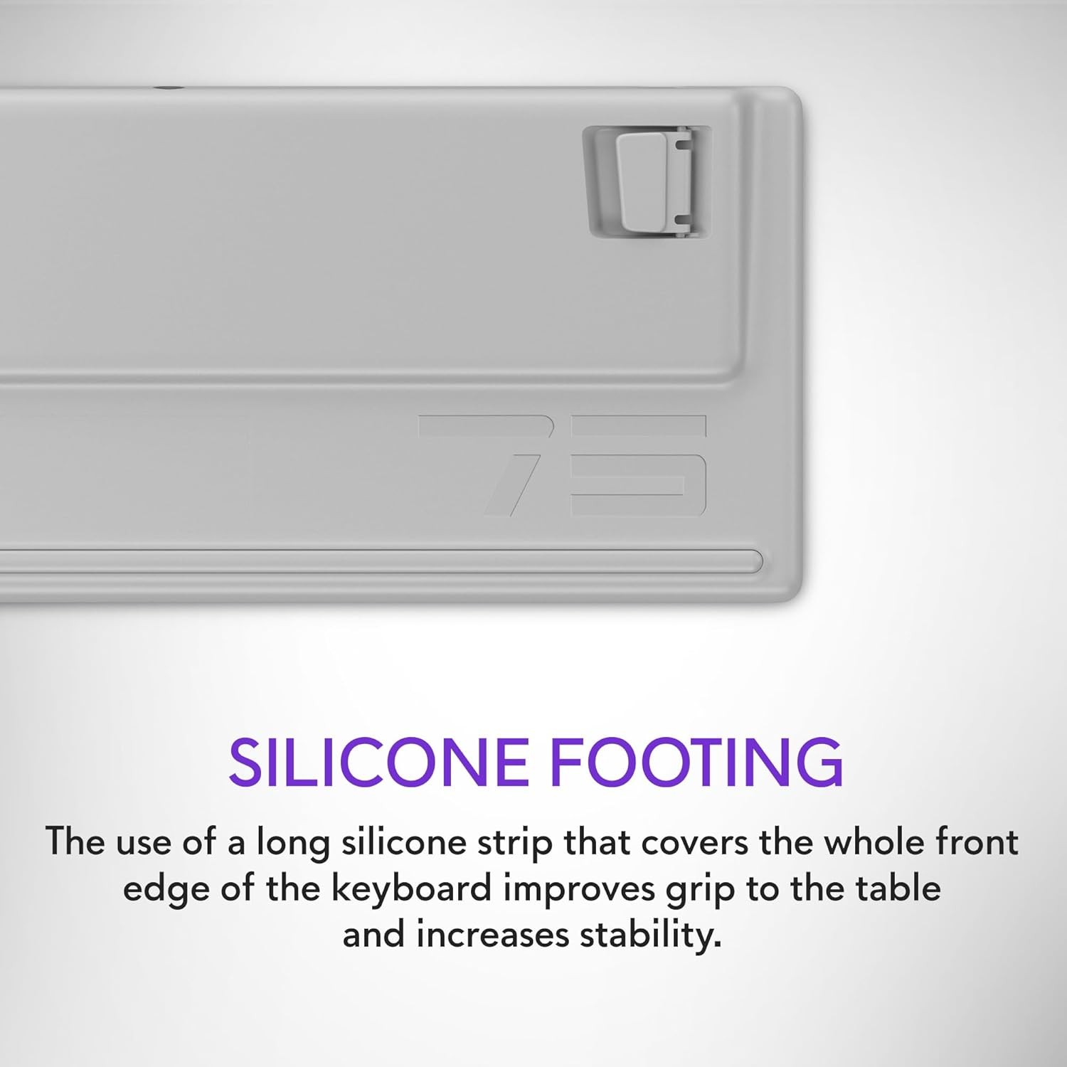 • Silicone footing: The use of a long silicone strip that covers the whole front edge of the keyboard improves grip to the table and increases stability. Identified by professionals as a must have for stability in intense moments.