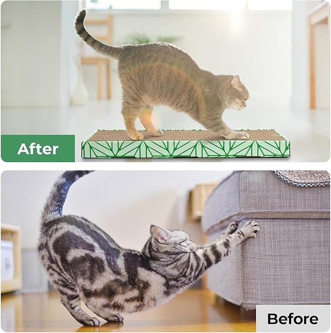 【Protects Furniture】:Designed to attract cats and meet their scratching needs, this pad prevents claw damage to furniture. It fits seamlessly into any home decor and offers protection to upholstery, leather, and wood surfaces, making it beneficial for both cats and owners.
