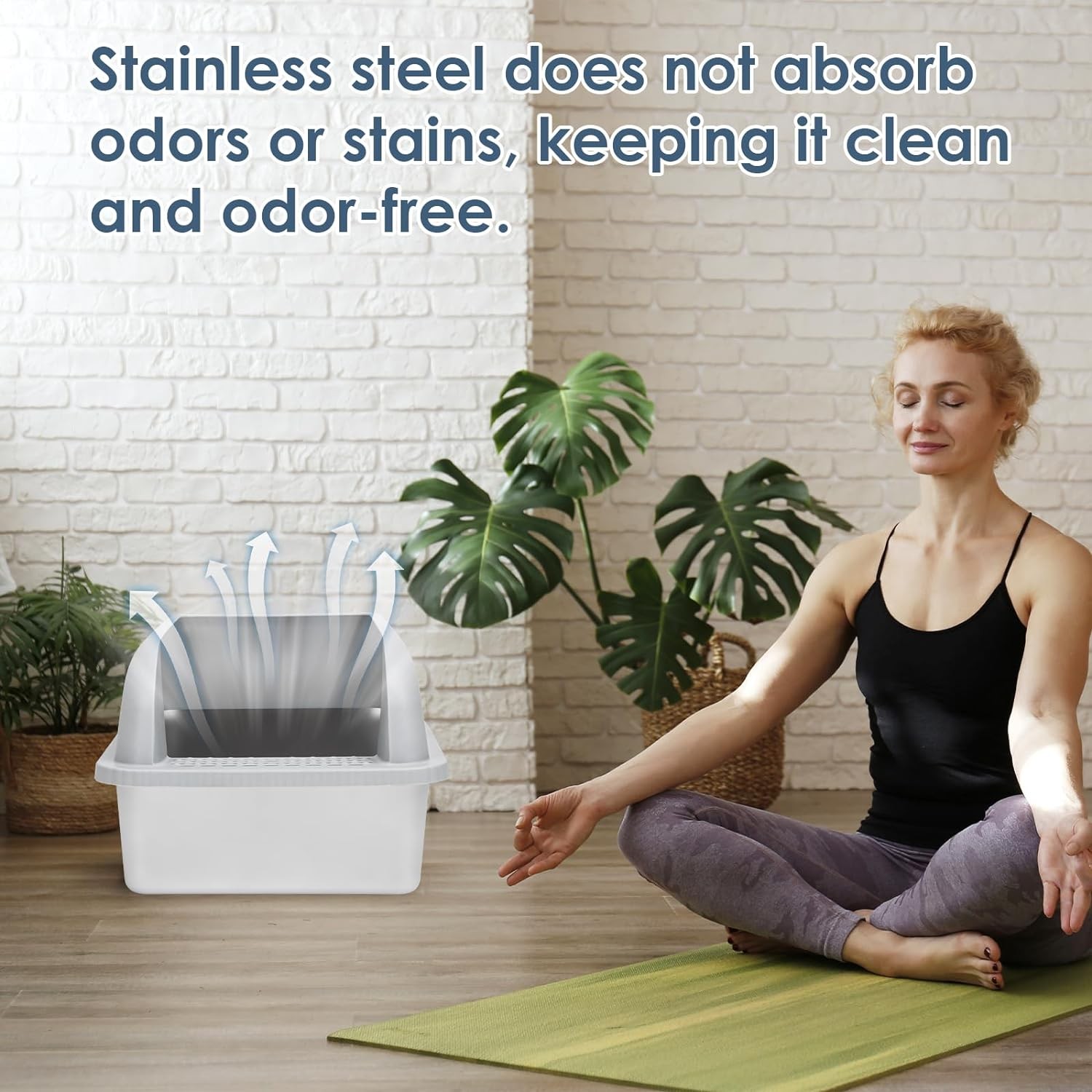 • Doesn't Absorb Odor - Cleaning the high walled stainless steel litter box for cats is very easy as waste slides off the smooth and nonstick surface effortlessly, leaving no lingering odors behind. Sturdy stainless steel won't get rust and scratches where odor can harbor like the plastic litter box does, creating a clean and hygienic environment for your cats.