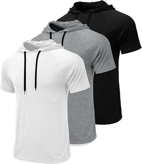Ficerd 3 Pack Men's Short Sleeve Hoodie Workout Shirts Comfy Running Active Athletic Pullover Sweatshirt
