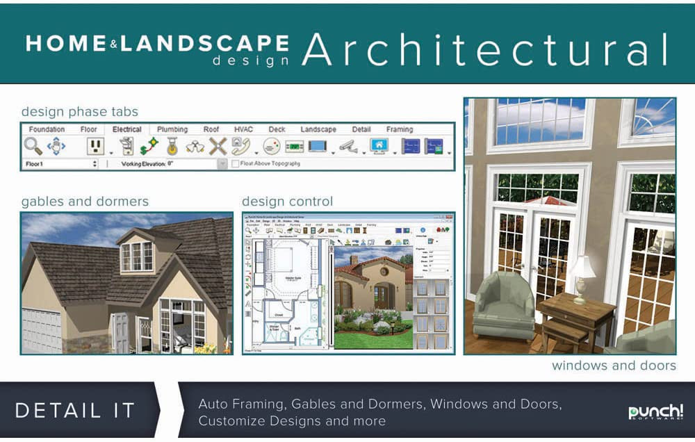 Design It - Detail It -Visualize It - Live ItEnhanced drawing tools, floor plans, brand name product libraries and photorealistic rendering capabilities make designing new homes more efficient, easier and exciting than ever! Whether remodeling, renovating, designing or building a brand new house, Punch! Home & Landscape Design Architectural Series v19 contains a powerful array of tools and features to help create unique, professional-level designs.